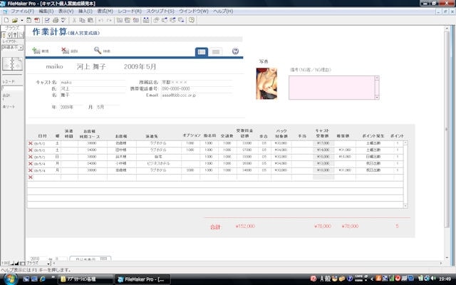 デリヘル顧客名簿データベース・報酬支払台帳テンプレート見本